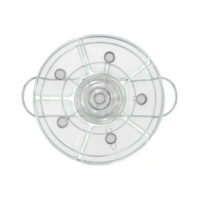Transforme sua mesa em um verdadeiro espetáculo de praticidade e elegância com o nosso Rechaud Giratório de 52cm. Ideal para servir com charme e organização, este modelo conta com: